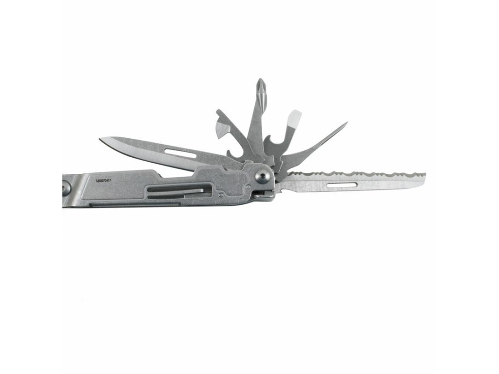 - Funkce: 1/4" šroubovák, 3-stranný pilník, Šídlo (AWL), Otvírák na lahve, Otvírák na konzervy, Zoubkovaná čepel (nůž), Chapadlo (součást kleští), Řezačka na tvrdý drát, Střední plochý šroubovák, Jehlové kleště, Šroubovák Phillips (křížový), Úhloměr, Pravítko, Malý plochý šroubovák, Čepel s rovným ostřím (nůž), Pilka na dřevo, Centrovaný magnetický 1/4" šestihran šroubovák bitů, Šroubovák na šperky, Dláto, Řezačka měkkého drátu, 12-dílná sada šestihranných bitů.