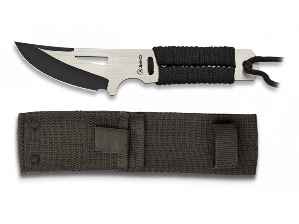 - pevná čepel, omotávaná rukojeť paracordovou šňůrou