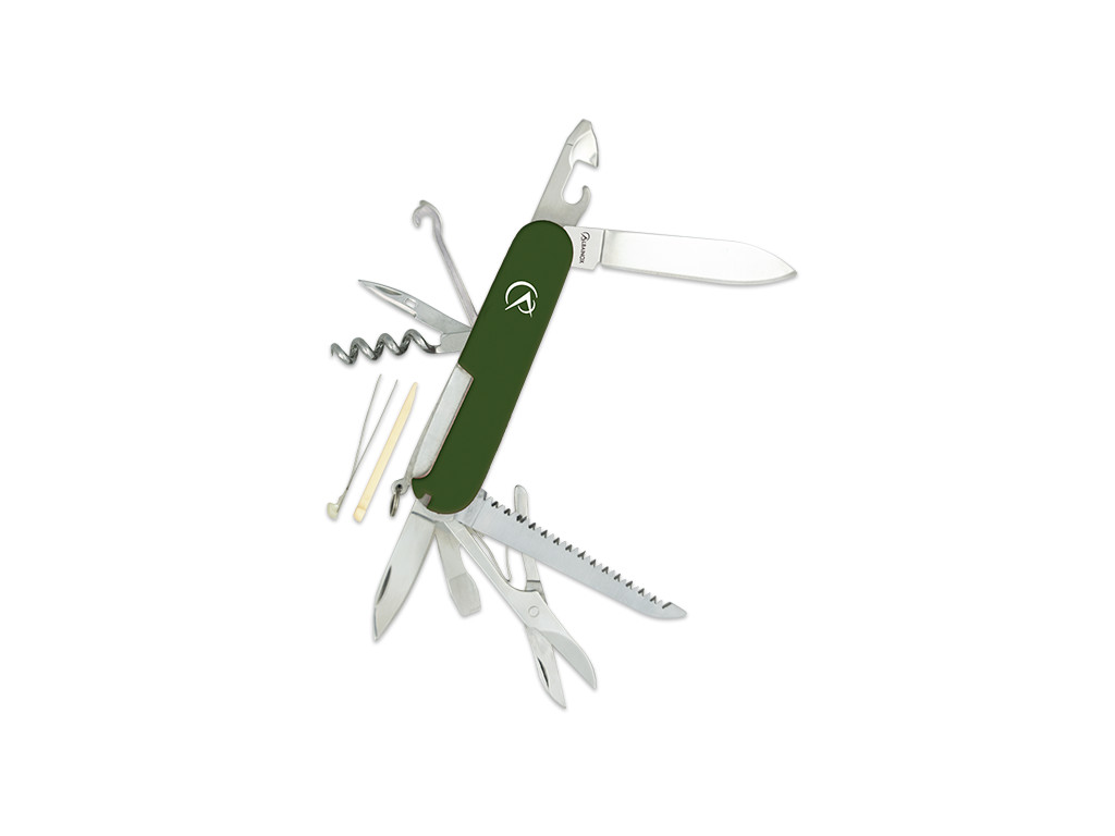 - 12 funkcí: nůž, otvíráky, pilka, šídlo, vývrtka, šroubovák, nůžky, pinzeta, pilník, atd..