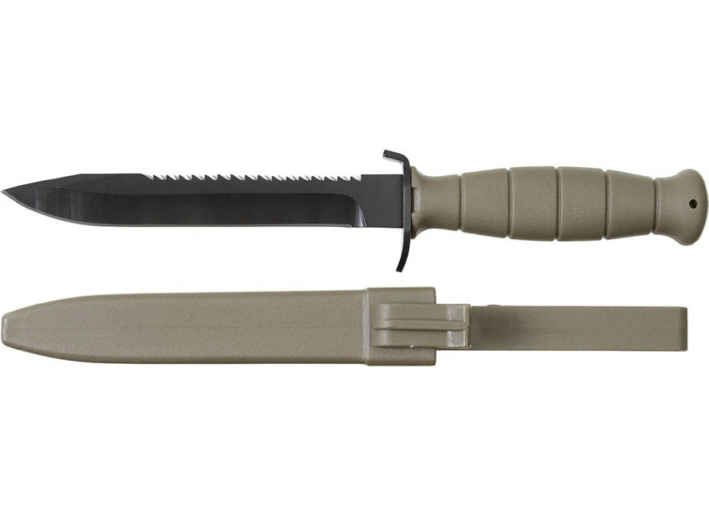 Nůž MFH 44082 AT s pevnou čepelí a pilkou 29 cm - oliv