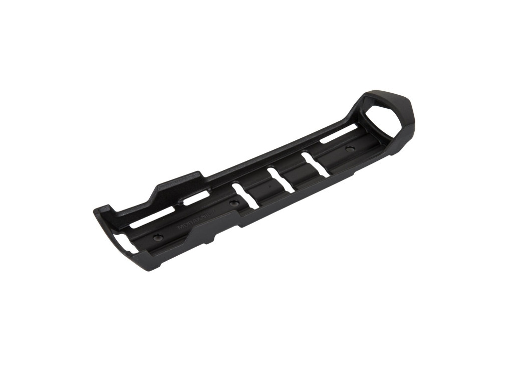 - přídavný plastový nástavec kompatibilní s MOLLE systémem obsahuje strategicky umístěné otvory pro šrouby na různé druhy popruhů