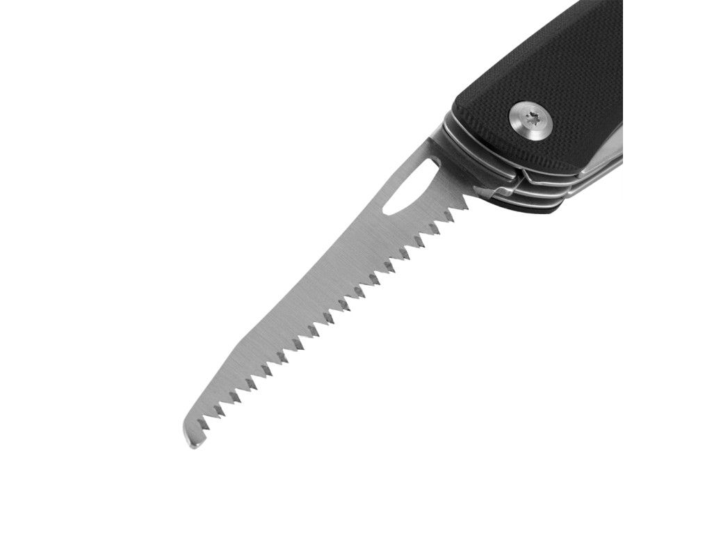 - Nůž se skládá z 9 různých komponentů: čepele, pily, otvíráku na konzervy, otvíráku na lahve (který může sloužit i jako plochý šroubovák), křížového šroubováku, děrovačky na kůži, spony na kapsu a rozbíječe skla.