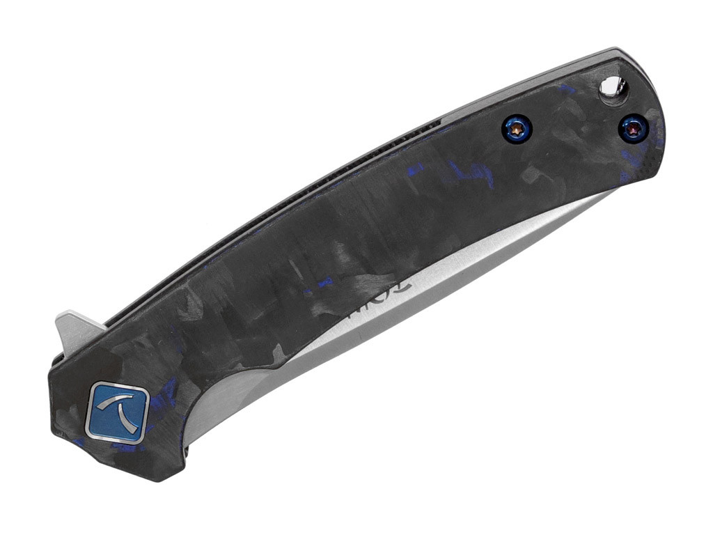 Čepel je vyrobena z kvalitní nástrojové oceli D2. Nůž se velmi snadno otevírá jednou rukou zatlačením na flipper a v otevřené poloze je čepel fixována pojistkou linerlock. Čepel je uložena na kuličkovém ložisku a její chod je proto krásně hladký. Rukojeť je z jedné strany z uhlíkového vlákna s neuspořádanou strukturou a druhá je z G10. Nůž je opatřen kapesním klipsem a součástí dodávky je úložný nylonový sáček.