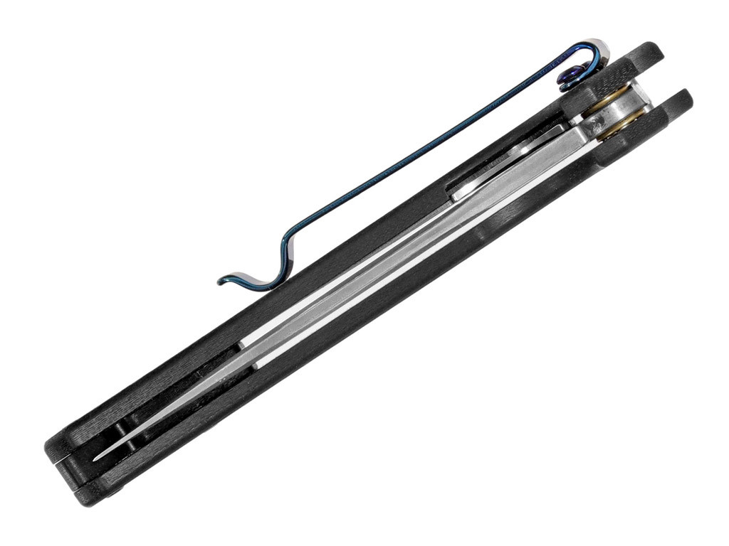 Čepel je vyrobena ze sendvičové damaškové oceli s jádrem z kvalitní nerezové oceli 9Cr18MoV, celkem 67vrstev. Nůž lze snadno otevřít jednou rukou zatlačením na flipper a v otevřené poloze je čepel fixována pojistkou linerlock. Hladký chod čepele zajišťují kuličková ložiska. Rukojeť je z jedné strany z G10 a na druhé straně je střenka z uhlíkového vlákna s neuspořádanou strukturou. Nůž je opatřen kapesním klipsem.