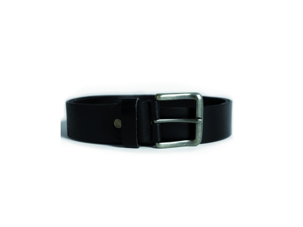 Kožený kalhotový opasek šířky 40 mm s kovovou sponou.