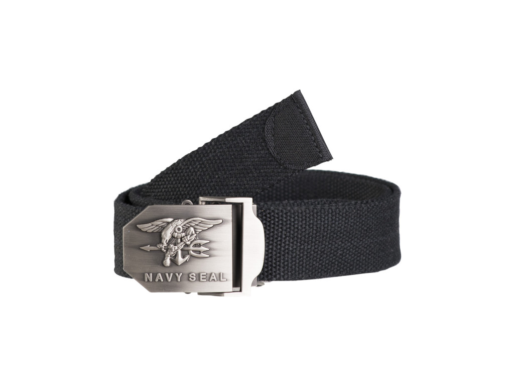Opasek s kovovou sponou s vyraženým znakem NAVY SEAL černý