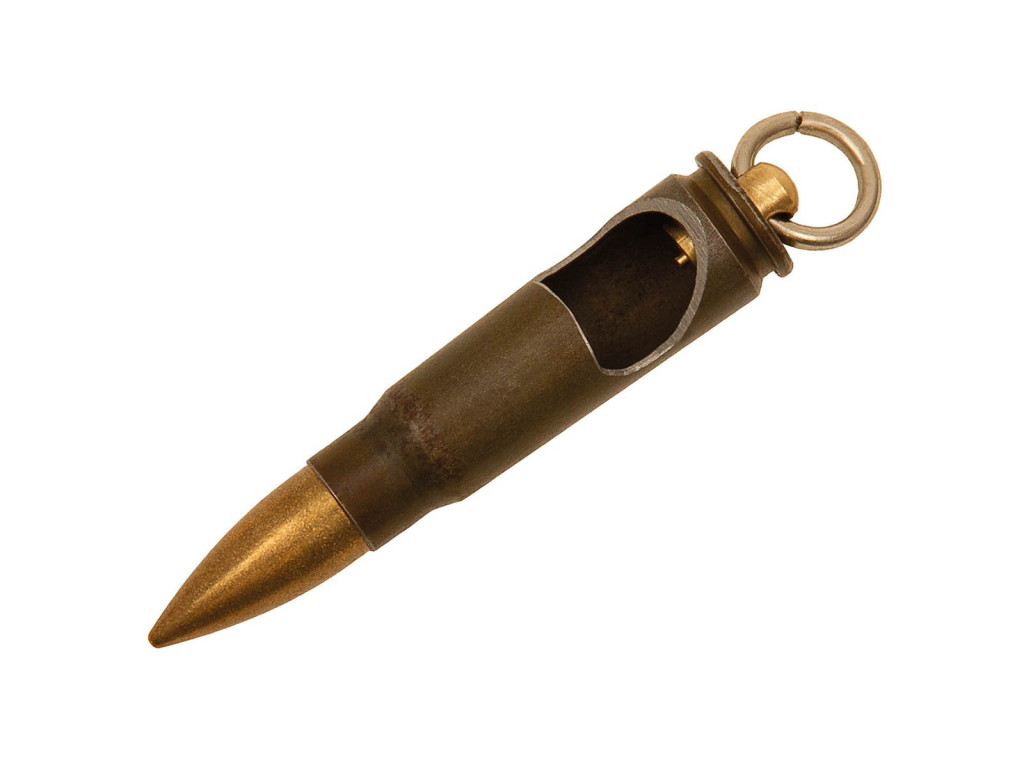 - Přívěšek na klíče ve tvaru originální patrony pro samopal AK47.