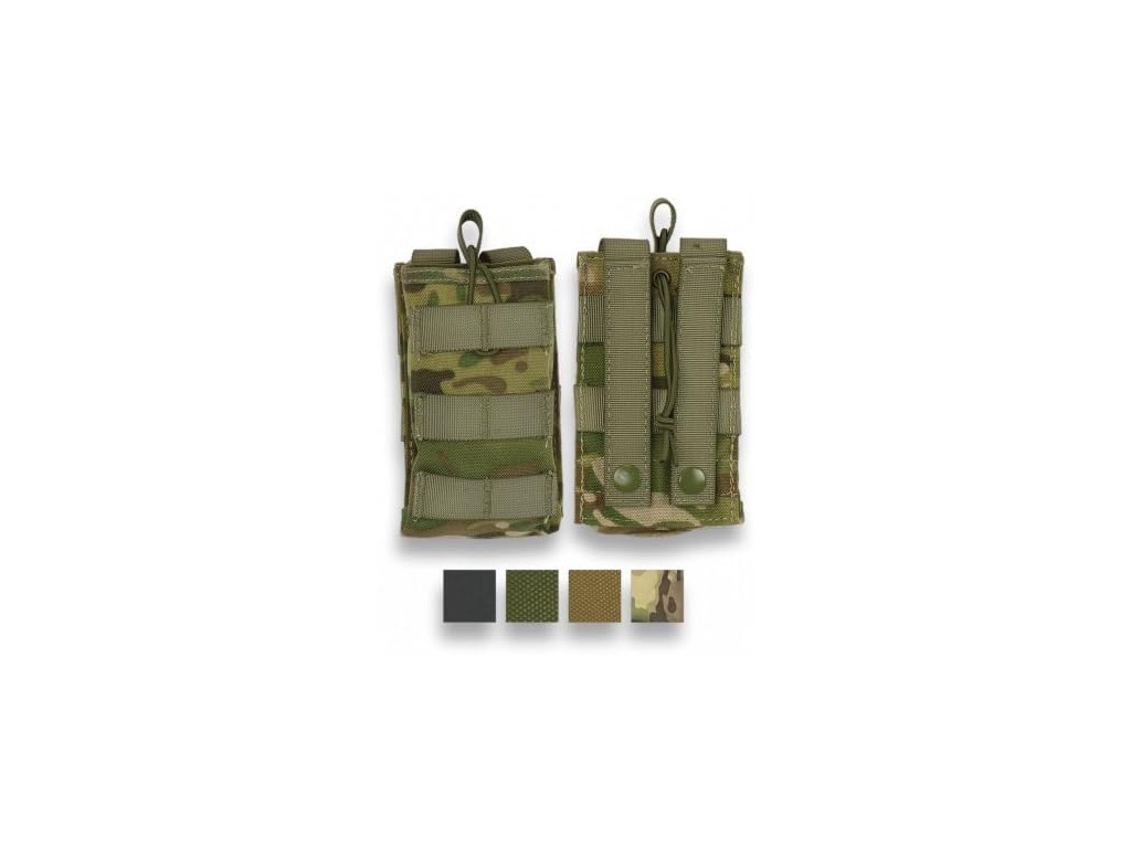 Otevřené pouzdro na zásobník s uchycením pomocí molle systému. Molle systém i na přední straně. V pouzdře je zásobník jištěn pružným lankem.
