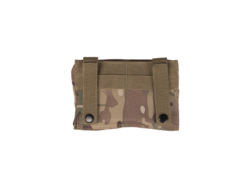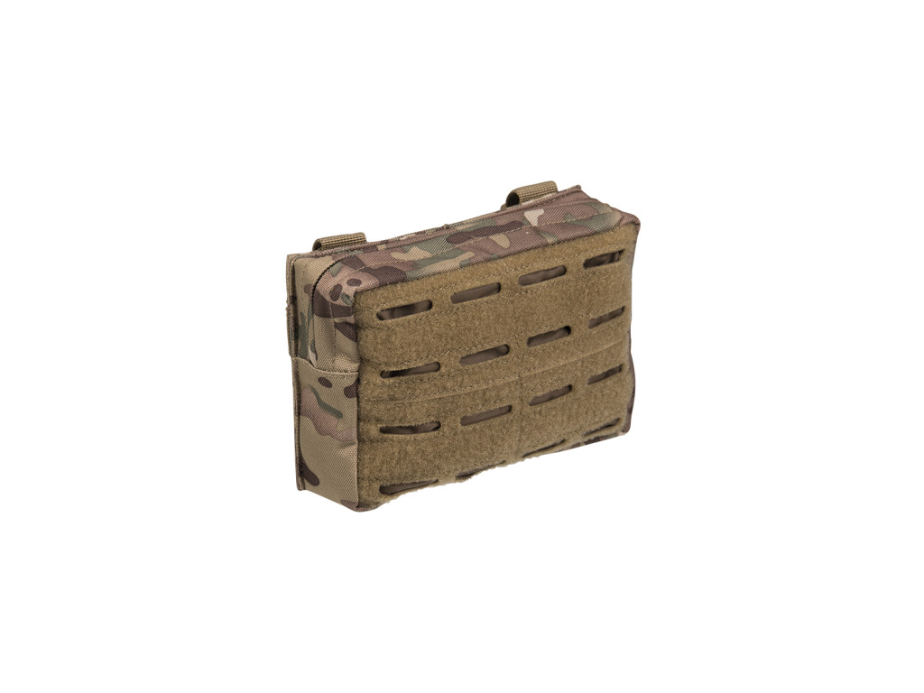 Taktické pouzdro z přední strany s laser MOLLE vazbou, na zadní straně klasické MOLLE pásky na druky. Celou přední stranu pokrývá suchý zip, ideální pro vaše velcro nášivky.