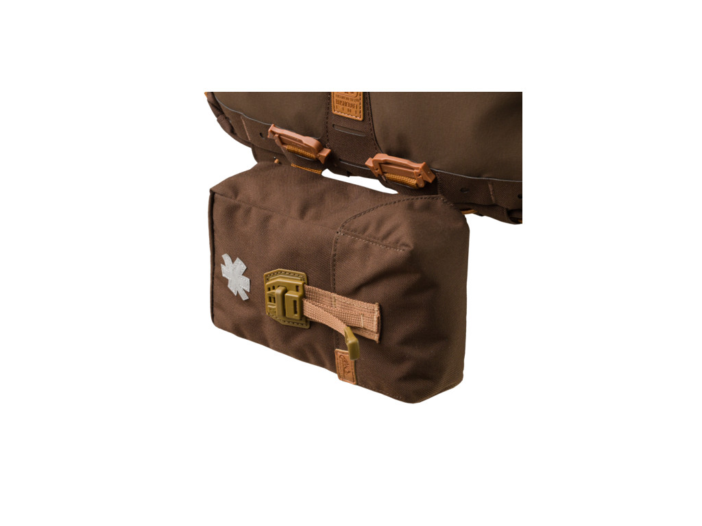 - Lékárnička Bushcraft First Aid Kit je vybavena montážním systémem MOLLE/PALS , který umožňuje její připevnění k batohům a taktickým vestám.