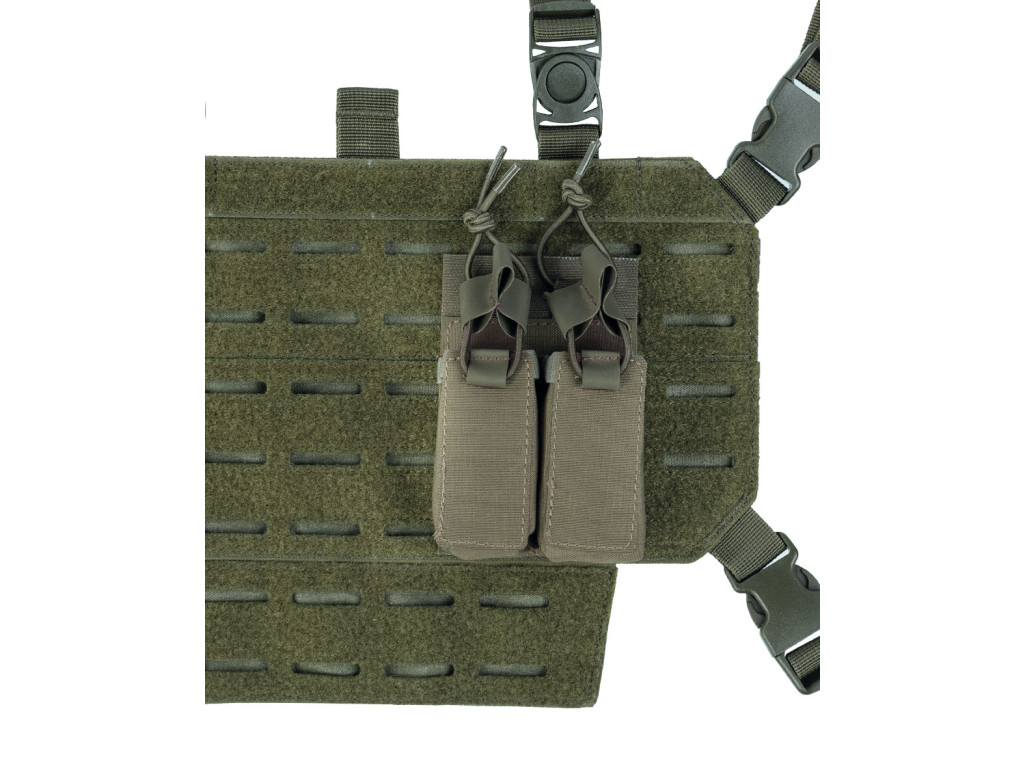 - Sumka je elastická, její zadní strana je pokrytá suchým zipem, takže ji je snadné připevnit na kompatibilní vesty či vybavení.