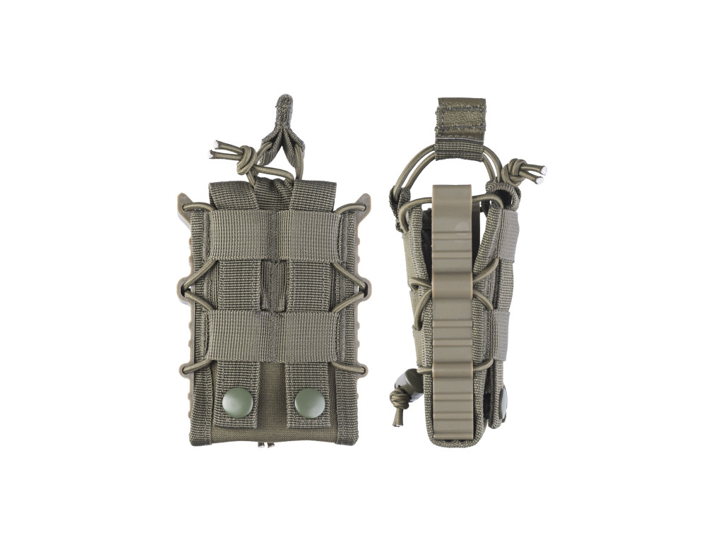 Univerzální polyesterová sumka disponující systémem elastických šňůrek, které umožňují nastavit velikost sumky podle velikosti vkládaného zásobníku. Sumka je po stranách zesílená a v její horní části se nachází elastická šňůra, pomocí které zásobník snadno zafixujete. Díky kompatibilitě se systémem MOLLE/PALS lze připevnit na velké množství vybavení.