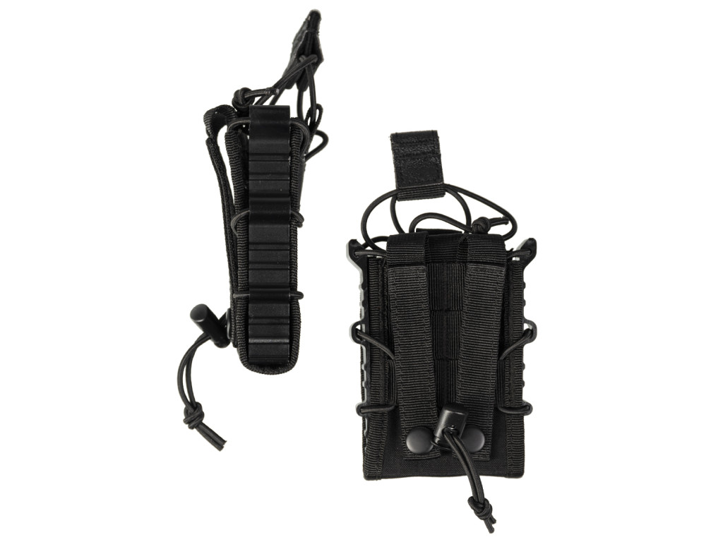Univerzální polyesterová sumka disponující systémem elastických šňůrek, které umožňují nastavit velikost sumky podle velikosti vkládaného zásobníku. Sumka je po stranách zesílená a v její horní části se nachází elastická šňůra, pomocí které zásobník snadno zafixujete. Díky kompatibilitě se systémem MOLLE/PALS lze připevnit na velké množství vybavení.