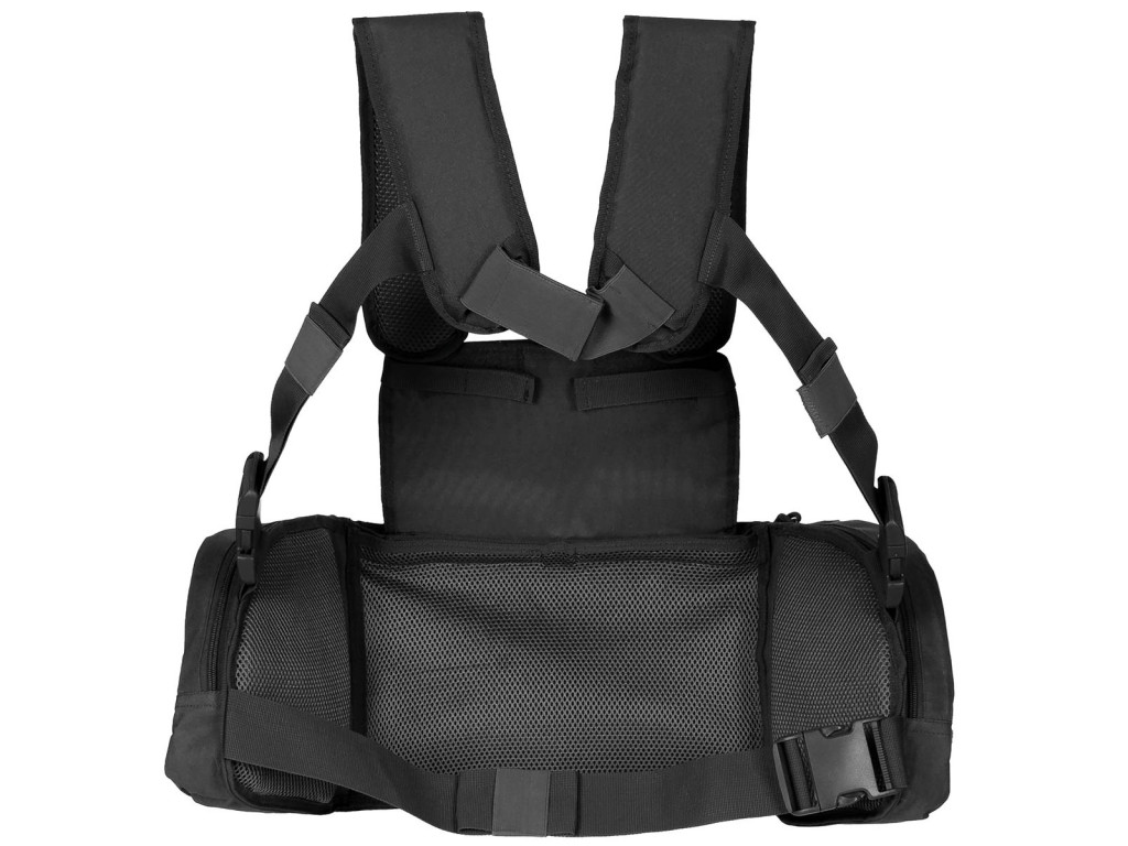 - nastavitelné, odnímatelné ramenní popruhy s D-kroužky a různými smyčkami, stejně jako elastický suchý zip na zadní straně