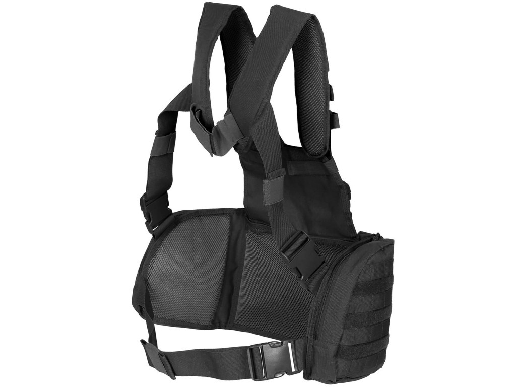 - Poutka pro připevnění Molle a panely se suchým zipem po celém obvodu vesty pro připevnění dalšího vybavení