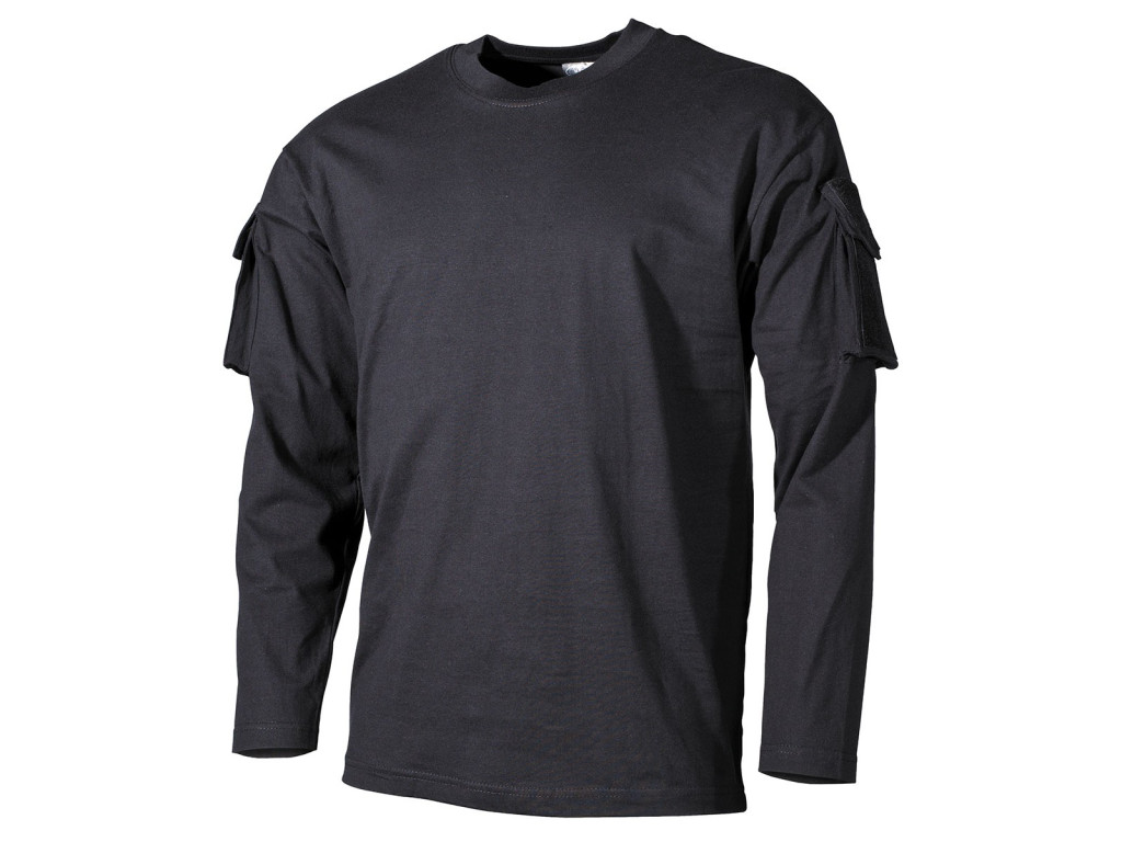 Triko s dlouhým rukávem a velcro kapsami v černé barvě